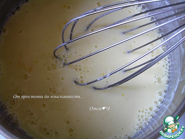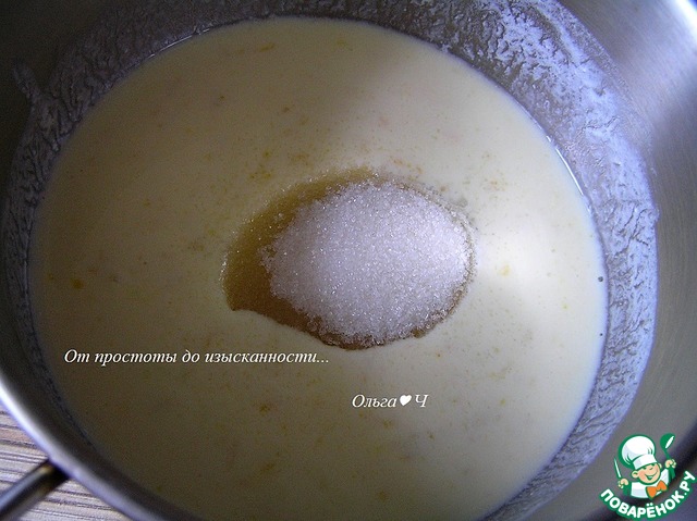 • Приготовьте крем. В кастрюльку влейте молоко, всыпьте цедру, добавьте яйца и немного взбейте венчиком.