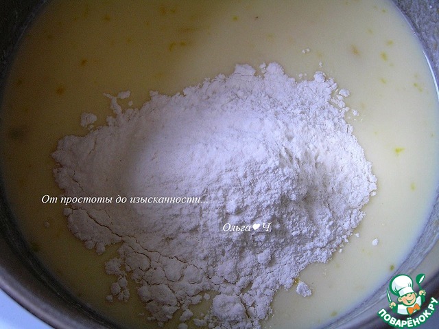 • Всыпьте муку и соль, быстро перемешайте венчиком...