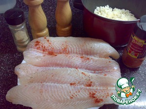 На рис выкладываем рыбное филе,