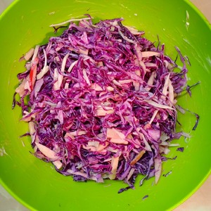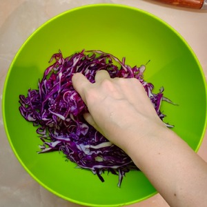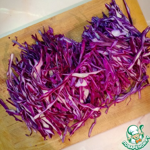 Капусту тонко нашинковать, немного посолить и помять руками.