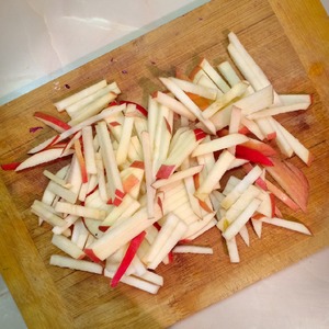 Довольно интересный по вкусу салат. Нашла его в одной из кулинарных книг. Сладость и легкая кислинка яблока отлично оттеняется сырным привкусом, а в целом - довольно гармоничный и яркий вкус.