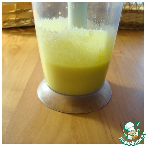 Желтки взбитые добавить в процеженное молоко, интенсивно помешивая 10 минут. Процедить через сито.