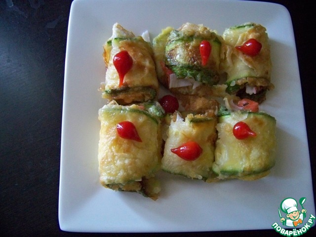Рецепт «Рулеты из кабачков с крабовыми палочками»: