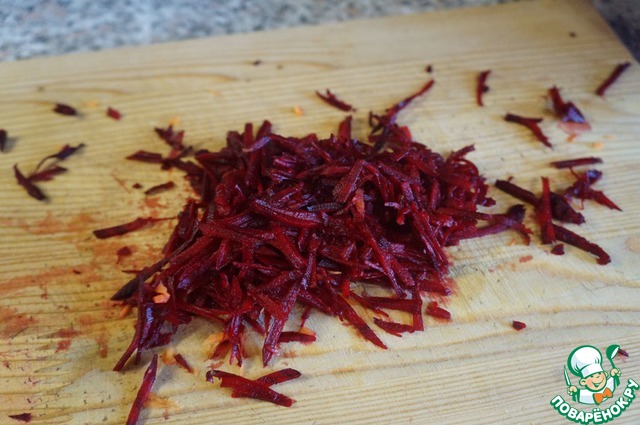 Свеклу очистить, натереть на терке для моркови «по-корейски».