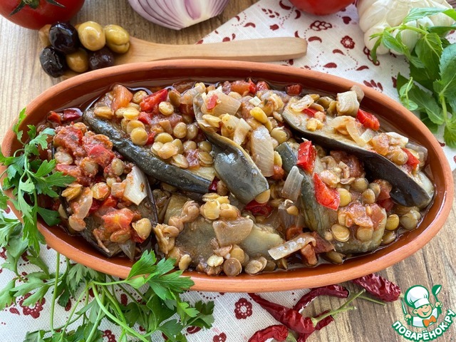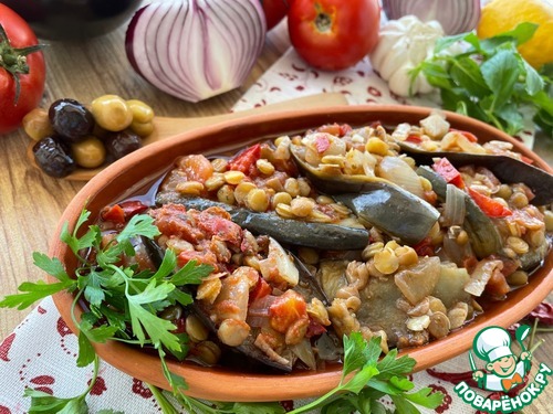 Рецепт «Рагу из баклажанов с зеленой чечевицей»: