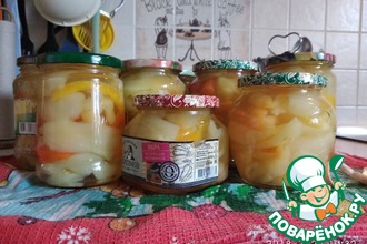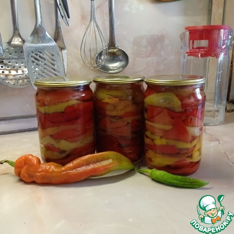 Для маринада смешать все ингредиенты и вскипятить. Залить перец кипящим маринадом и закатать.