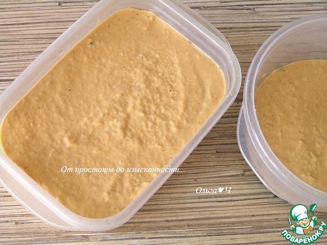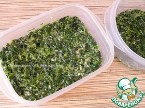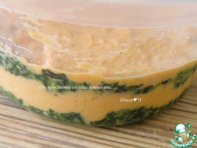 В один контейнер я начинала раскладывать массу из лосося, а в другой - из шпината. Посмотрим, какой мусс понравится больше.