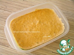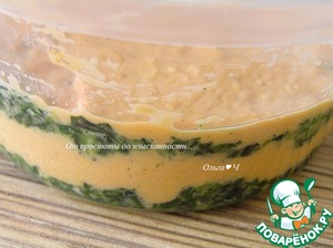 Обе массы по очереди выложите в небольшие формы, смазанные растительным маслом, слоями, пока они не закончатся.