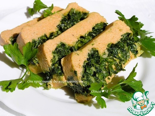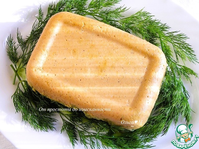 Перед подачей аккуратно выньте мусс из прямоугольной формы, вложите на тарелку, украсьте свежей зеленью.