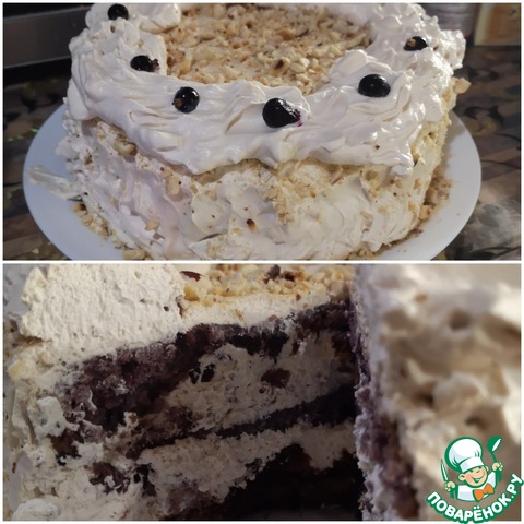Готовый "бисквит" остудите, разрежьте на 3 коржа.