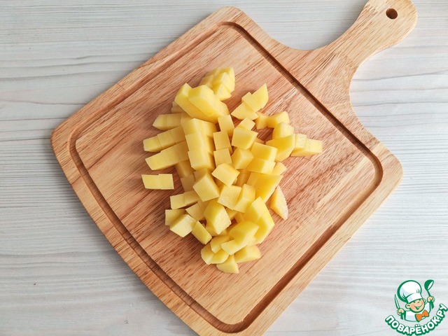 Сливочный сыр (1/2 пачки или 45 гр.) нарезать кубиками.