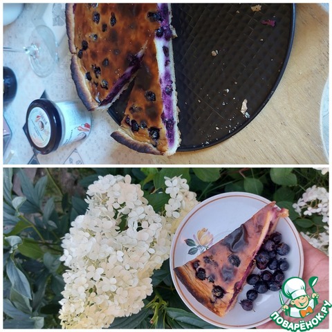 [+5]Пирог у меня с жимолостью и немного + клубники. Съели за ужином на "ура"!
