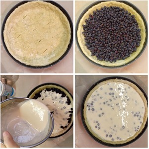 В смазанной маслом форме сформовать из теста основу с бортиками для пирога. Дно в нескольких местах проколоть вилкой и уложить ягоды. На ягоды вылить сладкую сметанную заливку.