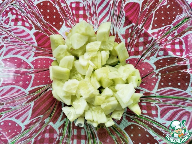Нарезать огурцы небольшими кусочками,