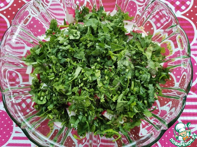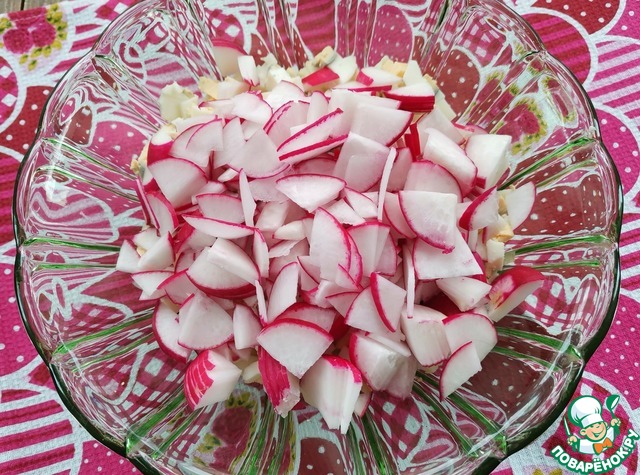редис тонкими четвертинками.