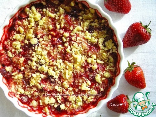 Пока идет сезон клубники, спешу поделиться быстрым, очень ароматным и вкуснейшим десертом пониженной калорийности! “Крамбл” (crumble) в переводе с английского означает “крошка”. Традиционно крамбл готовится в качестве десерта из фруктов и/или ягод, запеченных под крошкой из песочного теста. Однако, существуют и соленые варианты: овощные, рыбные и даже мясные. Современный крамбл - это по сути все что угодно, запеченное под хрустящей рассыпчатой крошкой, придающей блюду восхитительный аромат выпечки. Попробуйте!