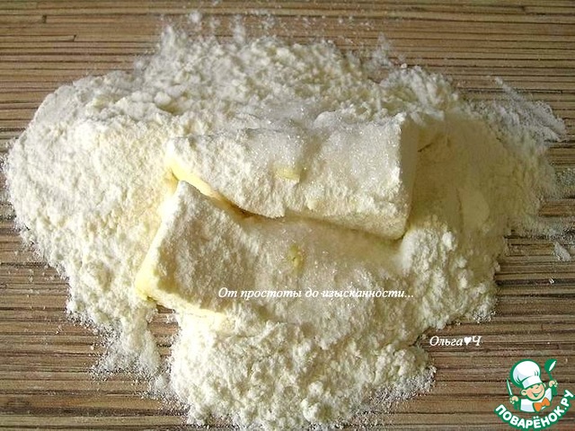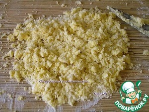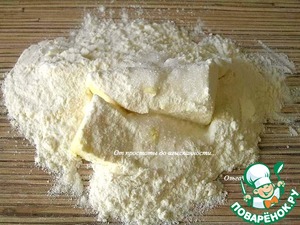 Муку со сливочным маслом и ванилином выложите на рабочую поверхность.