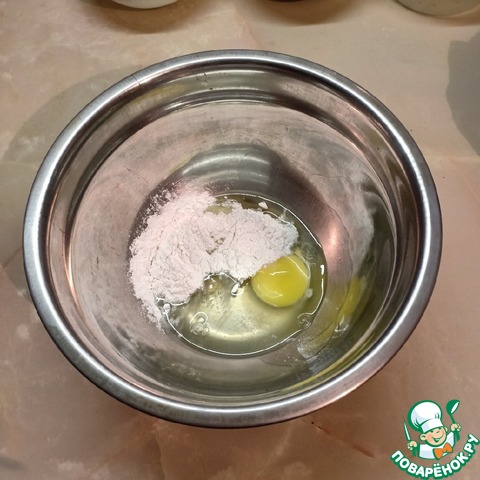 В глубокой миске смешать яйцо, крахмал, соль, перец.