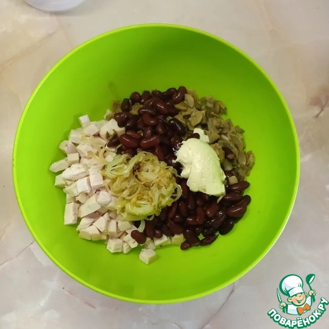 Рецепт «Салат с фасолью, грибами и курицей»: