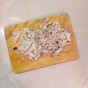 Куриное филе нарезать мелкими кубиками.
