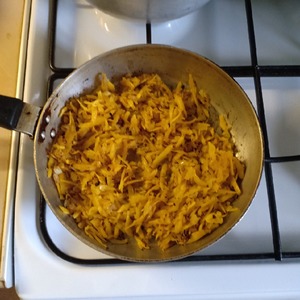 Лук и морковь обжарить на растительном масле до золотистого цвета.