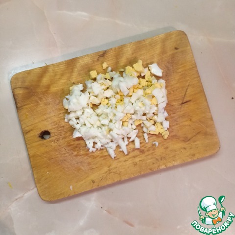 3-й слой - нарезанные кубиками вареные яйца;
