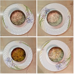 На плоское блюдо выложить салат слоями, промазывая каждый слой майонезом: