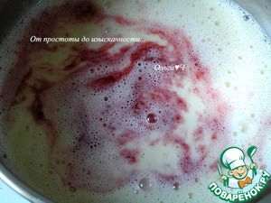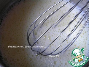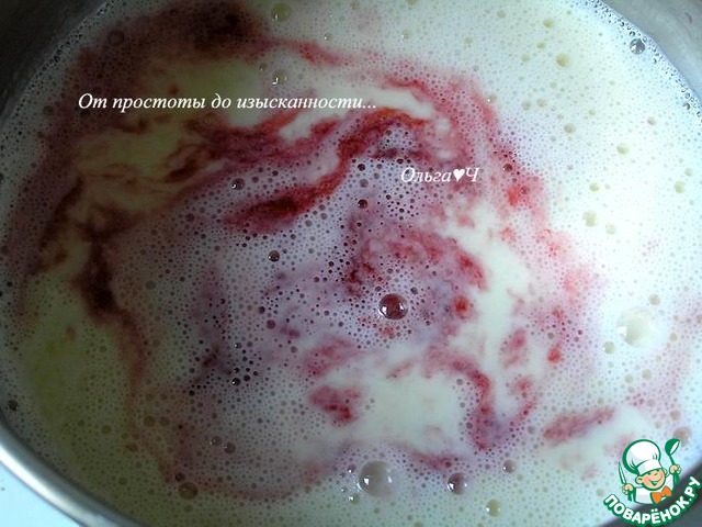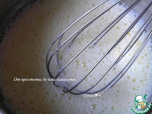 Влейте горячее молоко, помешивая венчиком, и доведите смесь до 85*С (или пока от массы не начнет подниматься пар). Остудите.