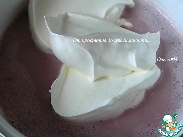 Добавьте взбитые в крепкую пену сливки и ванилин.