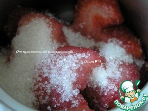 Клубнику выложите в маленькую кастрюльку, засыпьте сахаром.