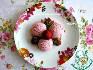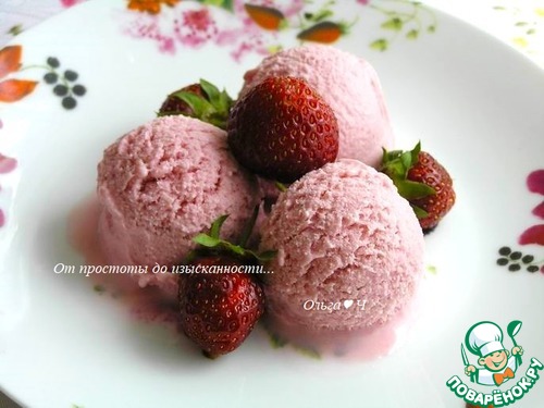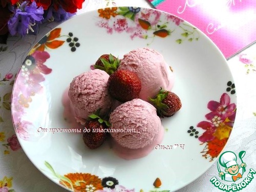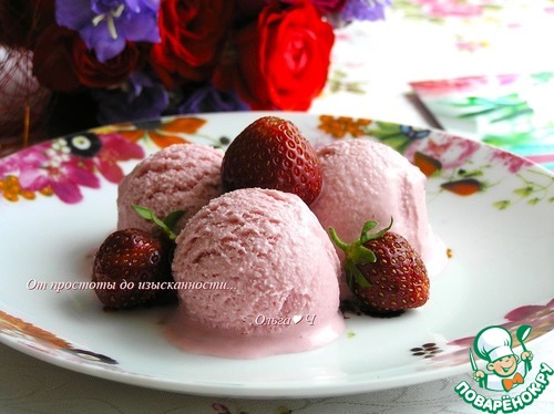 Готовое мороженое выложите в виде шариков, украсьте клубникой.