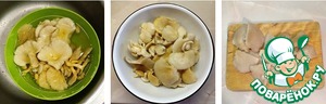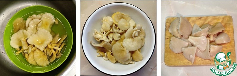 Вешенки очистить от мусора, хорошо промыть, коротко обрезать ножки. Большие грибы разрезать на части.