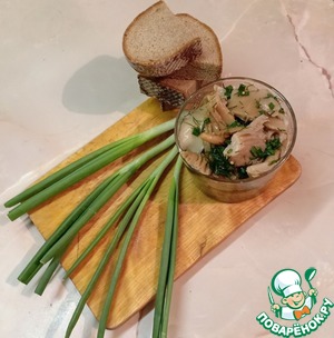 Выложить необходимое количество грибов из банки в миску, добавить растительное масло, зеленый или репчатый лучок, все хорошо перемешать.