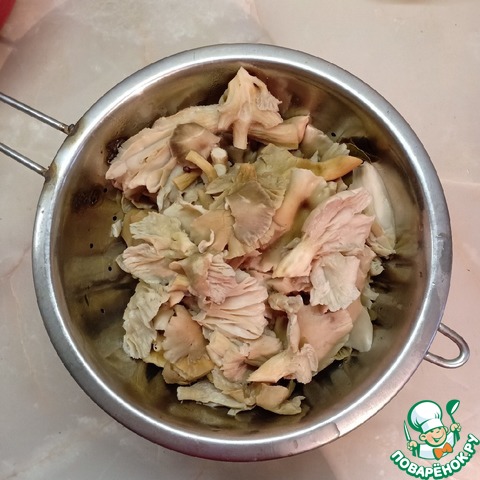 Затем грибы откинуть на дуршлаг и дать воде стечь.