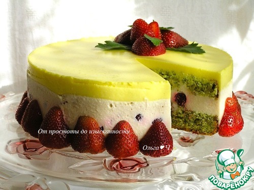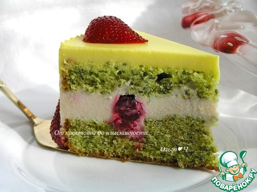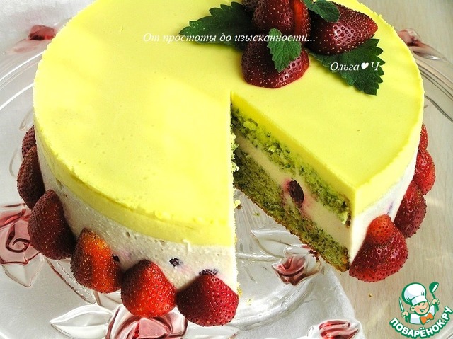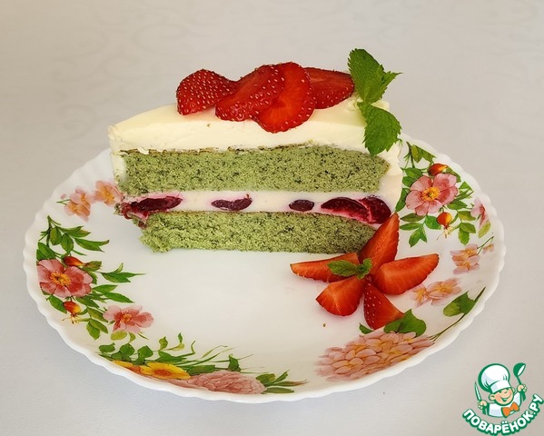 Люблю я круглые цифры! И свой 400-й рецепт на Поваренке хочу отметить этим вкуснейшим летним тортом с мятным салатным бисквитом, чудесным ганашем из белого шоколада с вишней, нежнейшим мятным баварским муссом и декором из клубники. Восхитительное сочетание получилось. Угощайтесь!