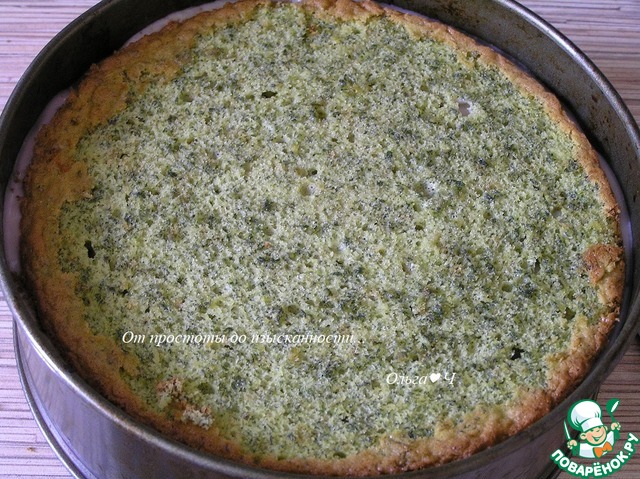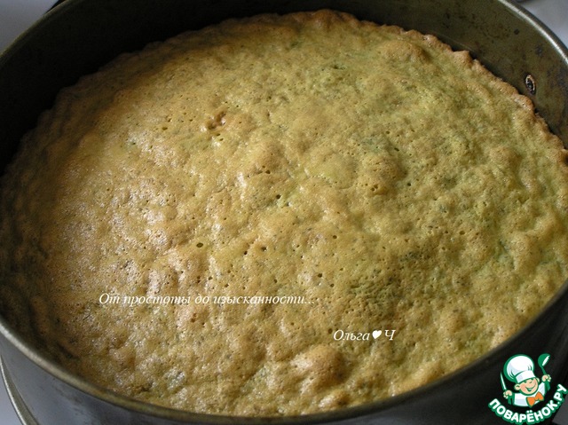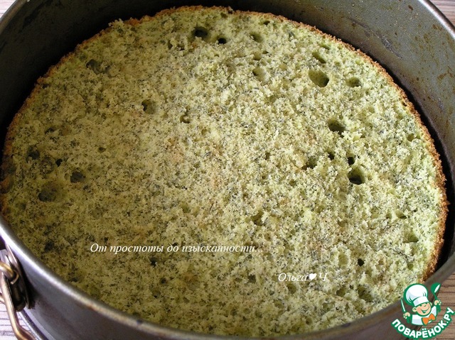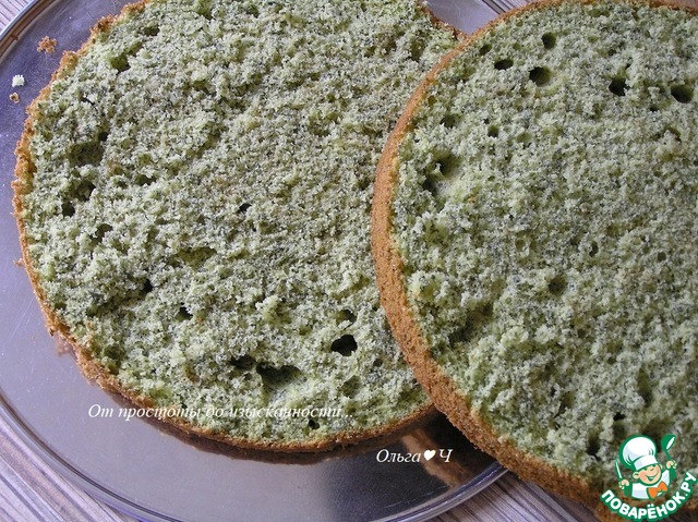 Бисквит остудите, затем разрежьте на 2 коржа.