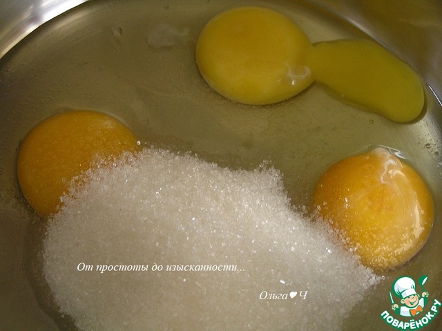 Яйца выложите вместе с сахаром в удобную чашу для взбивания.