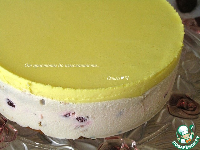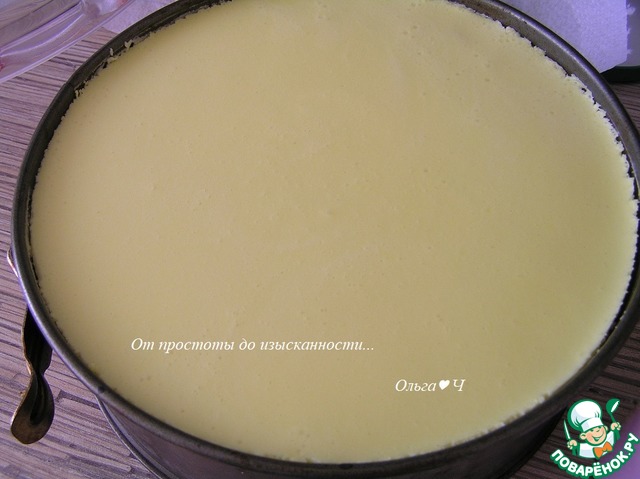 Достаньте форму с тортом из холодильника, вылейте сверху мусс. Уберите в холодильник на несколько часов до полного застывания.