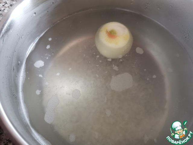 Вскипятить воду и добавить две столовые ложки промытого риса и очищенную луковицу. Варить на небольшом огне.