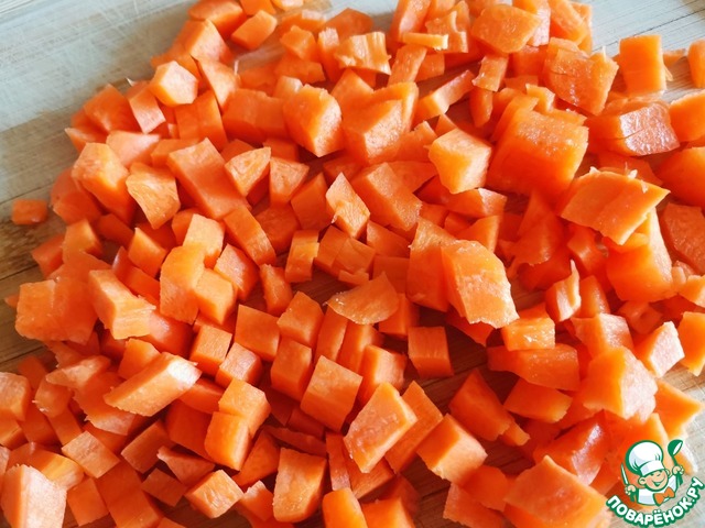Очистить от кожицы, вымыть, нарезать небольшими кубиками морковь.