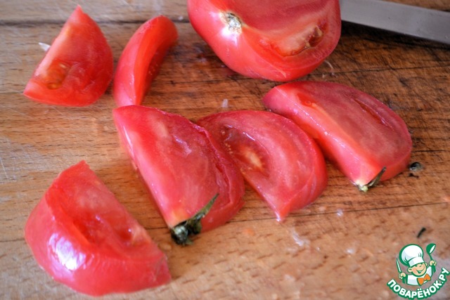 Помидоры нарезать.