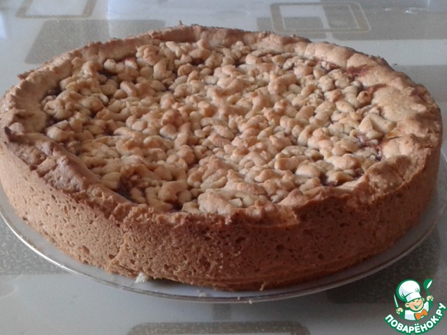 1/4 теста отщипнуть, отложить. Основную массу распределить по форме. Выложить наше варенье, разровнять. Сверху остаток теста на терке. И отправить в духовку на 30 мин при 200*