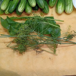 Листья хрена и стебли укропа хорошенько сполоснуть и тоже дать дать обсохнуть.