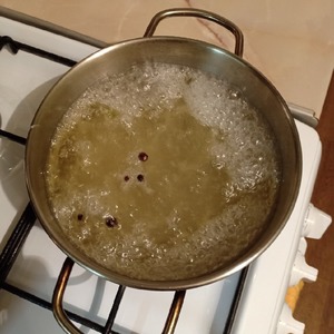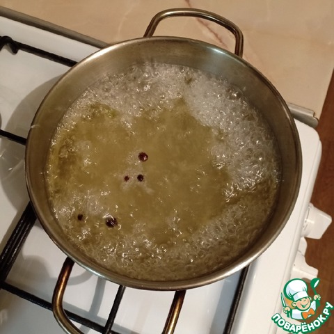 Для маринада воду вскипятить с солью, сахаром, перцем, маслом и уксусом.