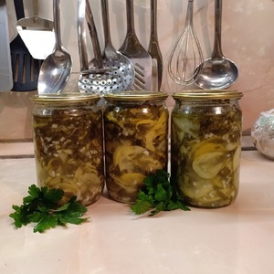 Продолжаю делать заготовочки из кабачков. Сегодня на очереди была очень вкусная закусочка из длинненьких, такую делала моя мама, а теперь делаю и я.