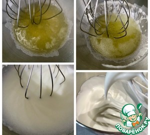 Готовим меренгу из белков и сахара. Меренга должна получиться устойчивая, но при этом мягкая без жестких пиков.