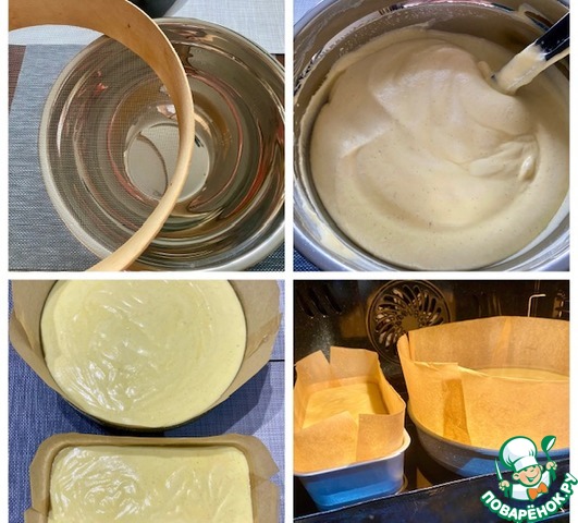 Для этого кипятим воду, наливаем ее в противень с высокими бортами и ставим нашу форму в этот противень.