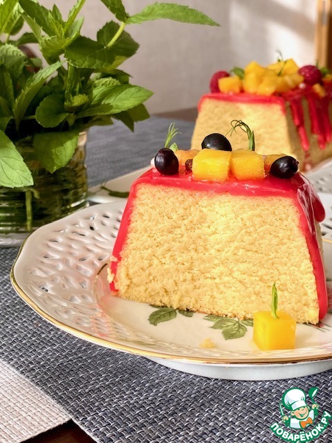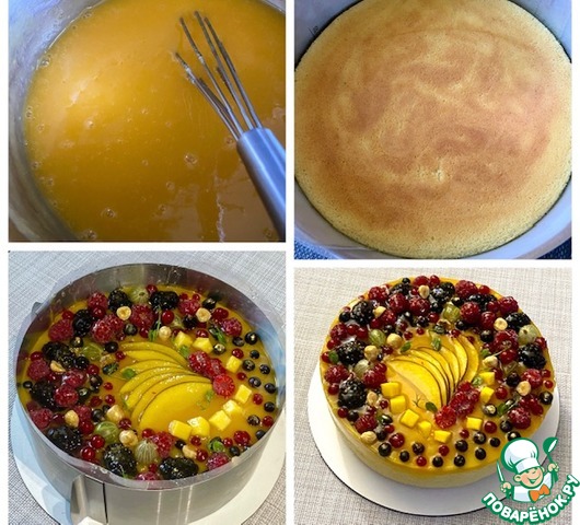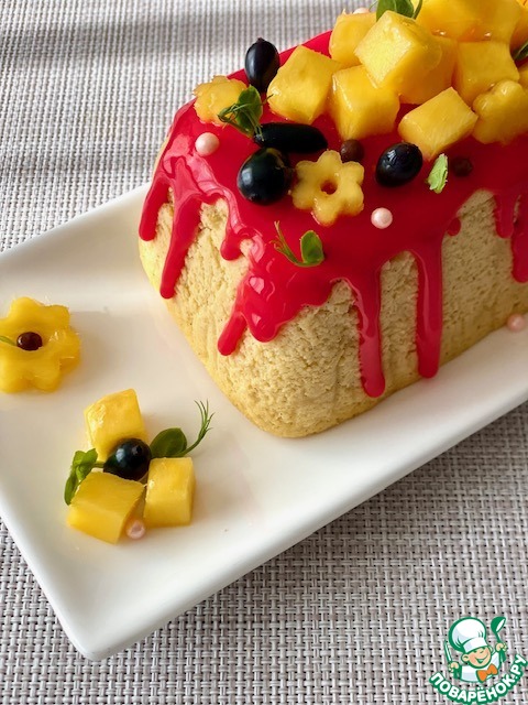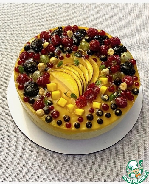 Если же десерт предназначен для праздника и хочется красоты, тогда можно немного пофантазировать и приготовить: либо взбитый шоколадный ганаш, или же манговый мармелад и украсить ягодами/фруктами (как в моем случае).