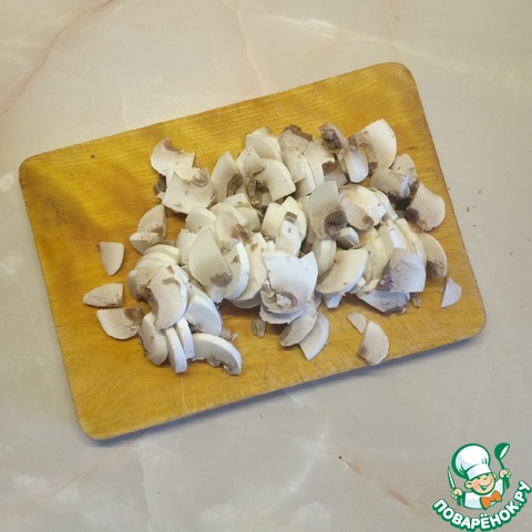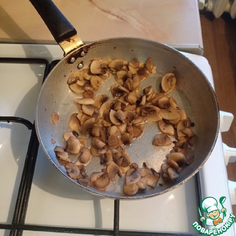 Выложить картофель на обжаренные грибы, сверху смазать майонезом (забыла сфоткать в запарке).