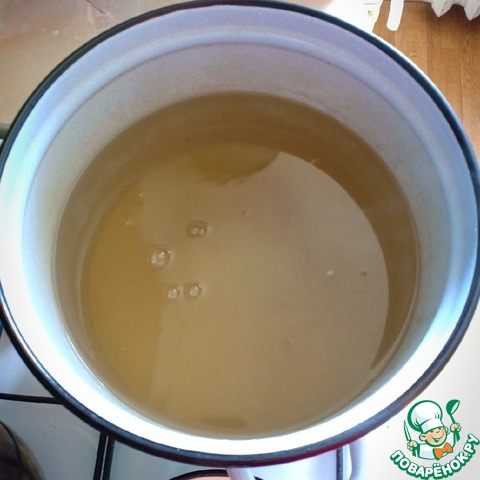 Затем воду слить в кастрюлю, добавить сахар и довести сироп до кипения.